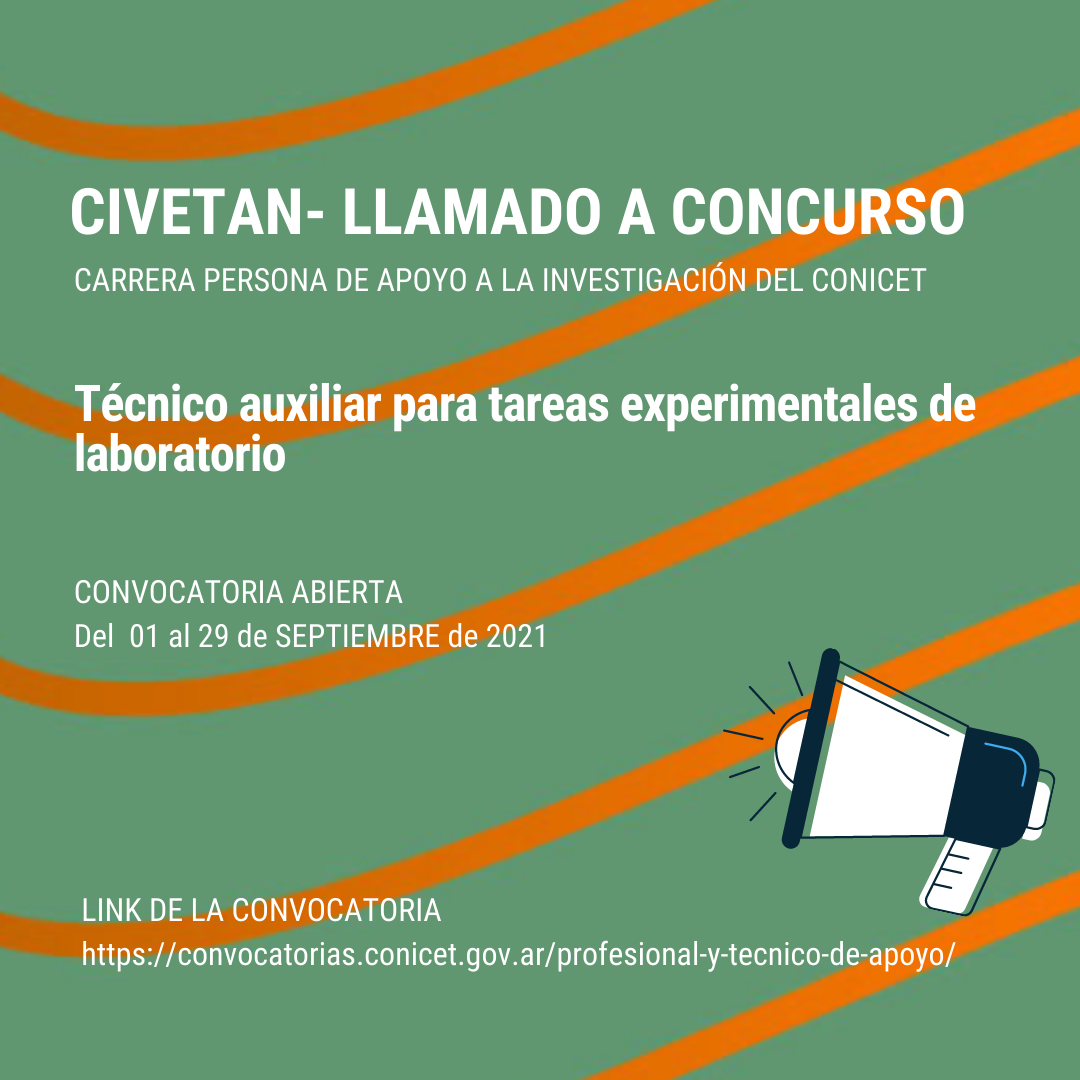 Desde el 1 al 29 de sptiembre se encuentra abierta la convocatoria para "Tecnico Auxiliar para tareas experimentales de laboratorio"