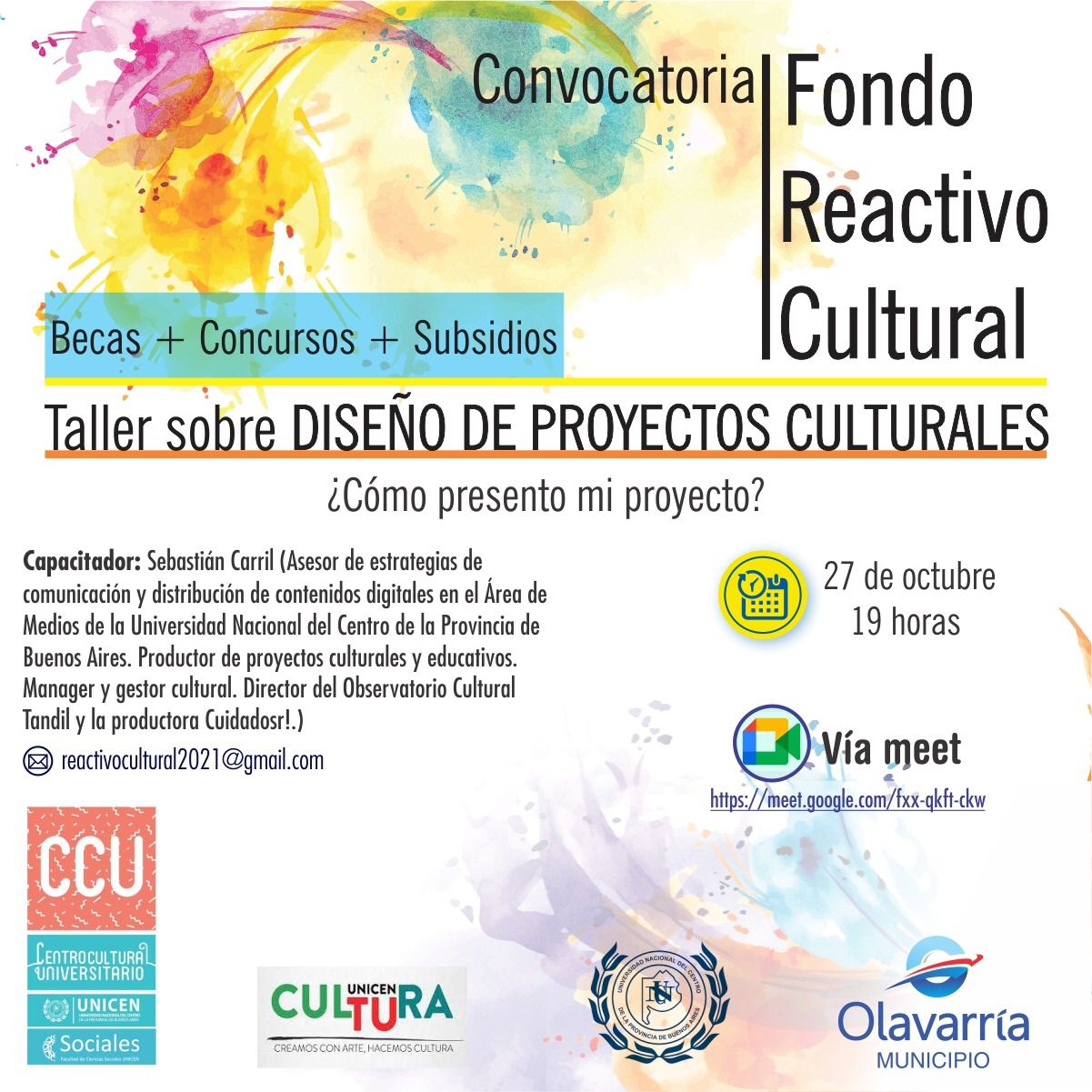 El mismo se realiza en el marco de la Convocatoria “Reactivo Cultural” y tiene como objetivo brindar conocimientos y habilidades que permitan el diseño y presentación de proyectos, en instituciones culturales.